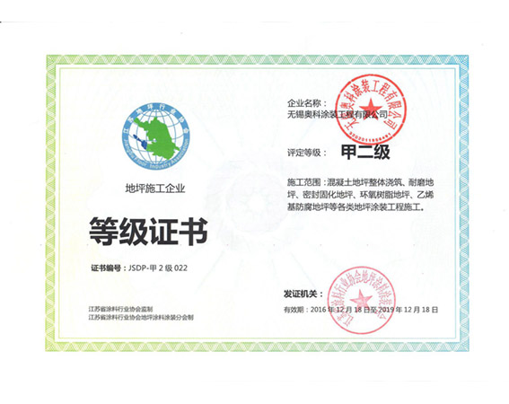 貳級專業施工資質,團隊人員結構年輕且富有創意,一直學習創新,并不斷引進優質施工設備 ,爭做地坪行業引領者